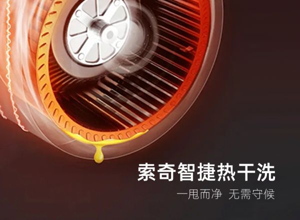 索奇C910油烟机,采用智捷热干洗技术,通过对蜗壳表面进行加热,顽固油污由深层至表层开始裂解融化;