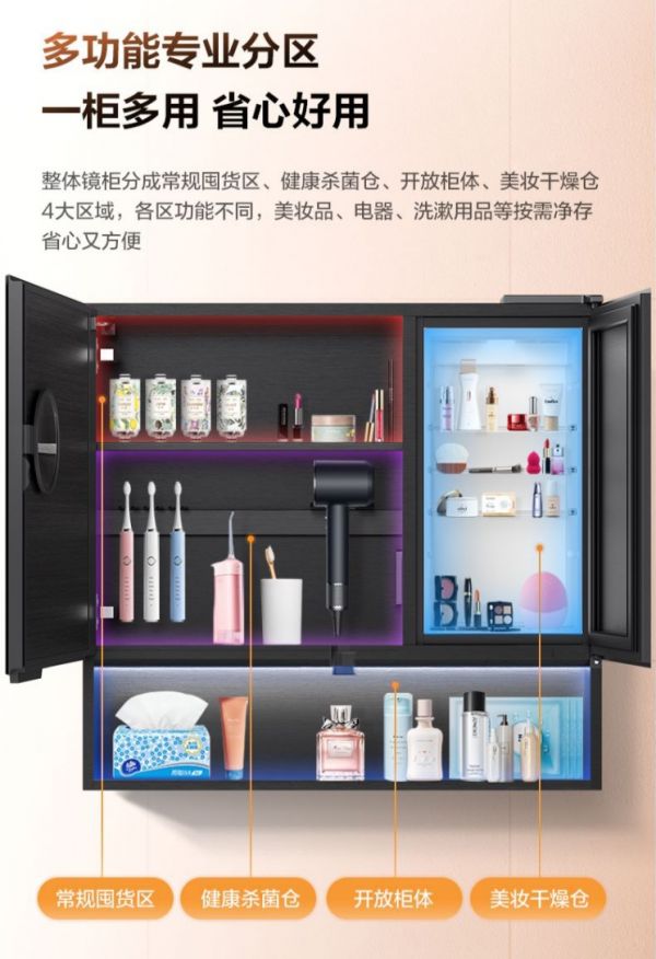 美的在智能镜柜的创新,突破产品功能屏障,打破产品单功能壁垒,在专业分区、除菌消毒、智能操控等方面寻求突破,为卫浴空间的打造升级提供更多可能。美的小仙境智能浴室镜柜不仅是取悦自己的物品,更是保护自己脸蛋的必需品。有了它,消费者能够无菌化妆、时刻补妆、整洁收纳以及养好皮肤,为生活增添美好的色彩,纵享智慧家居的便捷。