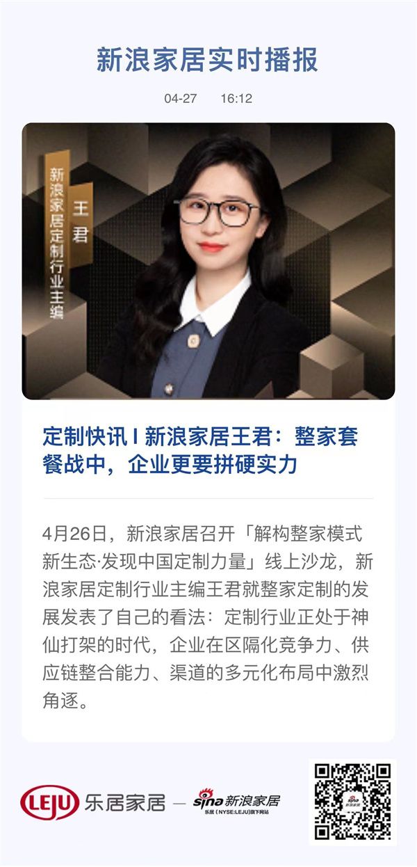 定制快讯 | 新浪家居王君:整家套餐战中,企业更要拼硬实力
