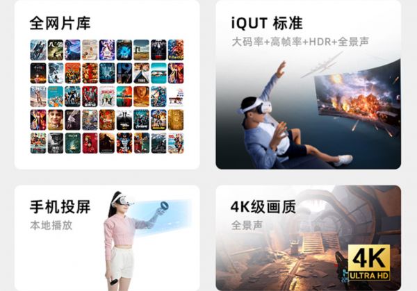观影一直是奇遇系列VR产品的强项。奇遇独创了iQUT未来影院2.0标准,3000时巨幕相当于20个80时的电视屏大小,带来的视觉冲击非传统投影能够媲美。奇遇Dream Pro VR堪比在家里打造了一个3D巨幕影院,观众则享受黄金中心位观影位置。并支持HDR、杜比全景声、AI画质增强等, 3D立体效果及360度立体沉浸音效从视觉、听觉等方面直接拉满大片观看沉浸感。此外,奇遇Dream Pro支持手机投屏、本地播放等多种方式,可以说是功能丰富,一应俱全。要是担心玩久了会影响视力,还可以开启低蓝光模式,进一步消除蓝光的影响。