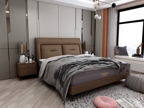 软床面料采用头层牛皮制造,透气性强,纹路清晰美观,耐磨性强。靠包使用高回弹超力棉填充,饱满均匀,自然承托身体的颈部与腰部。