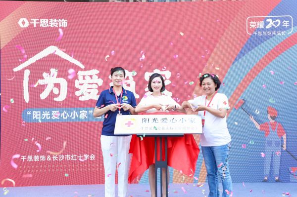 7月24日,千思装饰集团20周年庆典上,由千思装饰携手长沙市红十字会共同打造的“阳光爱心小家”成功揭牌。
