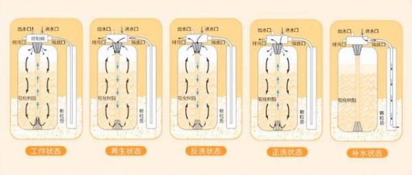 时间延迟型即当系统再生周期天数为0时,在当天设置的再生启动时间开始再生;流量及时型即当剩余用水量为0吨时,自动启动再生程序;流量延迟型即当剩余用水量为0吨时,在当天设置的再生启动时间开始再生;混合清洗型即结合时间和流量,二者有一个到0时,会在当天或者隔天设置的再生启动时间开始再生。