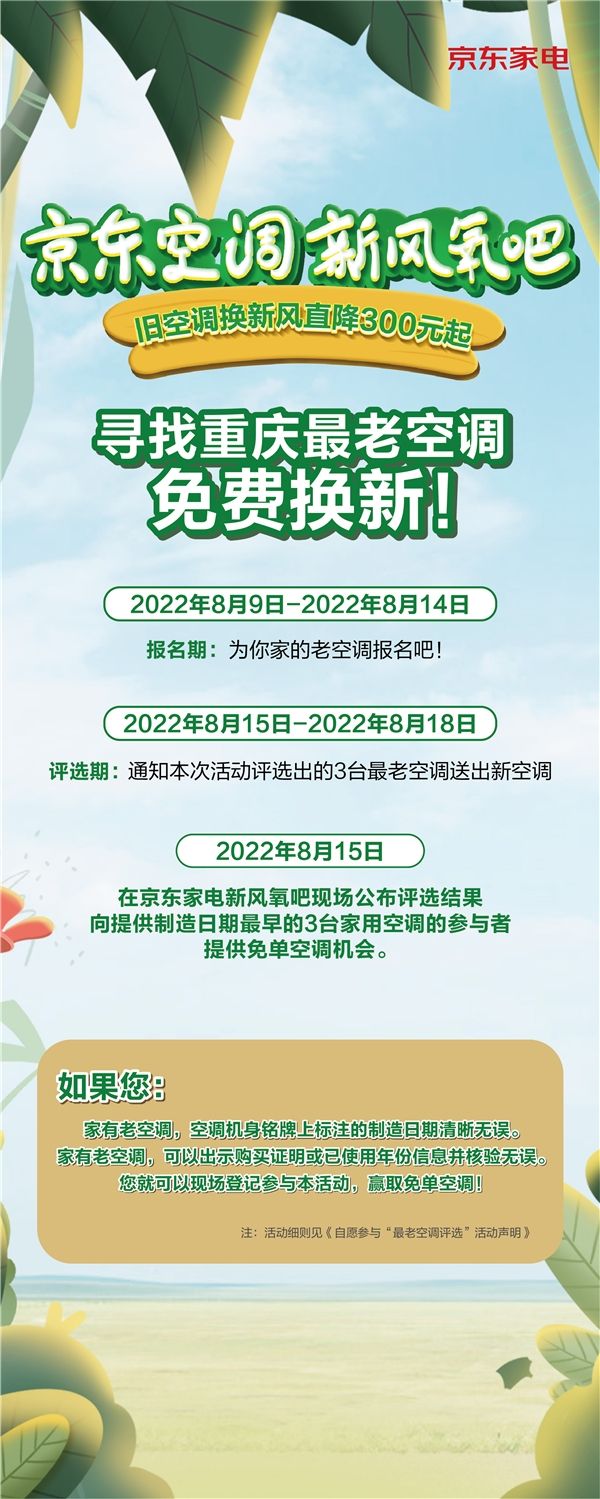 8月9日-8月14日,参与京东家电新风氧吧“寻找重庆最老空调评选活动”,有机会免费换新,老伙计也能值千金。