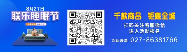 无论您是想为家里购置新物,还是替换旧物;是需要彰显品味的家居饰品,还是经久耐用的大件家具;是想要为家增添色彩明艳的时尚气息,还是简约大方的清新感受;此次睡眠节钜惠可以一次性满足您对家具的诸多需求,让您的家绽放出全新活力。这个盛夏,联乐一如既往地提供高质量商品给广大顾客选择,为您的家居选购带来更多福利。扫码关注客服微信,进入活动报名。