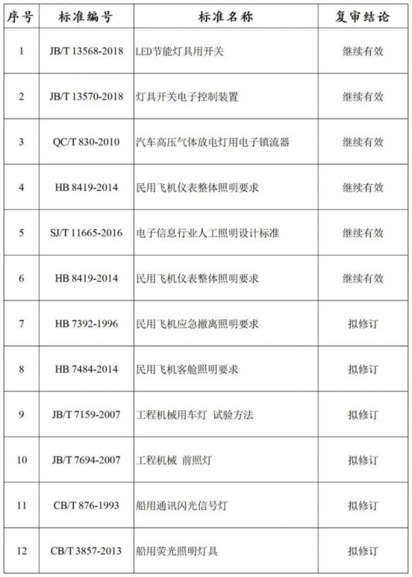 12项照明相关行业标准复审结论公开征集意见