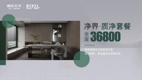 “展志天华 · 净界系列”,净,极澄澈之感。界,纳万物之境。以净为界,重构“家空间”定义。净享百态,百种风格定制个性空间;净感家居,净醛环保守护家居生活;净价可享,五大爆款套餐一价到底;净心之选,无套路零增项靠谱省心。