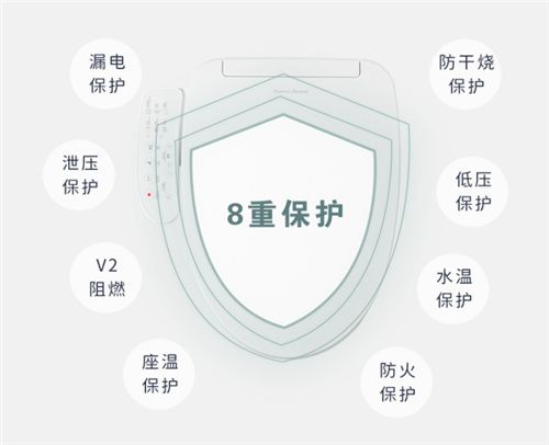 最后除了功能、卫生,安全防护也是我在选择智能马桶盖时比较关注的一点,毕竟家里有小朋友,安全问题不容忽视。宜韵这款美标智能马桶盖我用起来就很放心,它有漏电保护、泄压保护、V2阻燃、座温保护、防火保护、水温保护、低压保护和防干烧八重保护,全方位保护使用者安全。有了这样完备的保护,使用更安心!