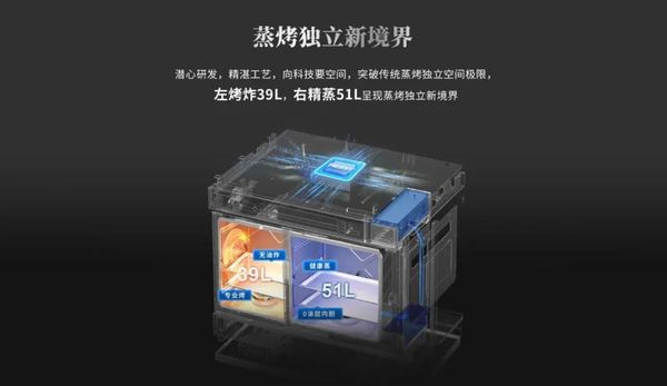 左烤炸39L+右蒸炖51L双腔齐动