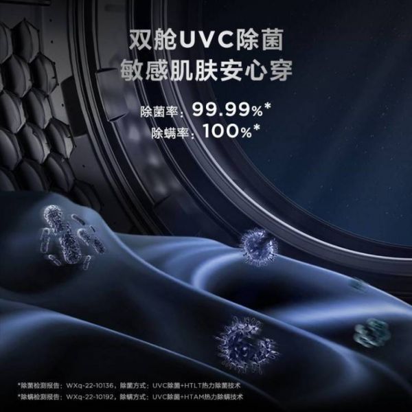 另外,TCL Q10洗衣机双滚筒皆具有强大的UVC紫外线除菌功能,脱水阶段自动开启,除菌率高达99.99%,除螨率高达100%,无需太阳暴晒,也能使家人的衣物不受细菌螨虫侵害,从而保障生活环境健康。