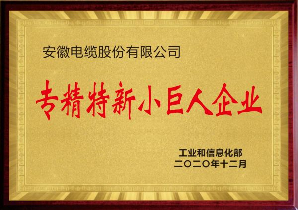 经过多年的积淀,安缆凭借在细分市场的占有率、强大的创新能力、关键核心技术,成功入选了工信部第二批专精特新“小巨人”企业名单。