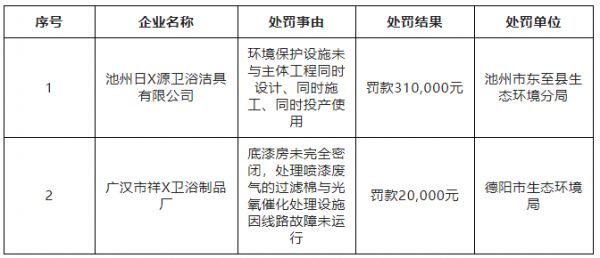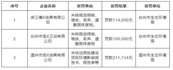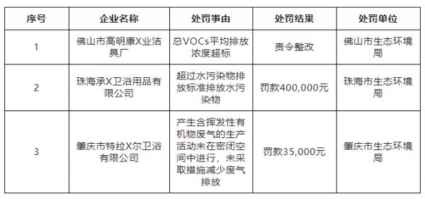 14家卫浴企业环境违法被通报,罚款金额超170万元