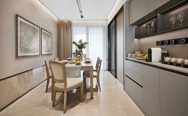 餐厅是一家人享受团聚时光的焦点所在,餐桌上的丰满搭配暗含了季节的信号,透露出女主人对生活的细心与无限热爱。