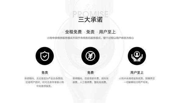 许多踩过清洁家电“雷区”的用户表示,产品“买得起”却“修不起”,时间、精力加上金钱成本,实在令人心累。但在小狗吸尘器用户群中,售后服务却备受好评。小狗吸尘器创新推出的“中央维修”售后服务刚刚过完了8周岁生日,它提出的“全程免费、免责、用户拥有话语权”三大承诺也在8年来成为用户的“定心丸”。小狗吸尘器践行承诺,所有故障均不区分责任,保修期内全程免费为用户提供官方维修,并且将一切解释权放到用户手中。售后流程也简捷省心,用户在小狗吸尘器官网或电话保修后,坐等快递员上门取件即可,产品修好后同样送货上门。如此靠谱的售后服务,在清洁家电品牌中实属不多。