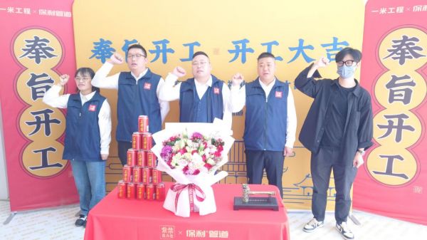 在开工仪式上,一米家居项目工程师王远宣布项目奉旨开工,并为业主奉上了由保利管道与紫禁造办处联合打造的“奉旨开工”文创礼盒。