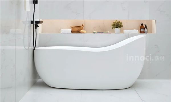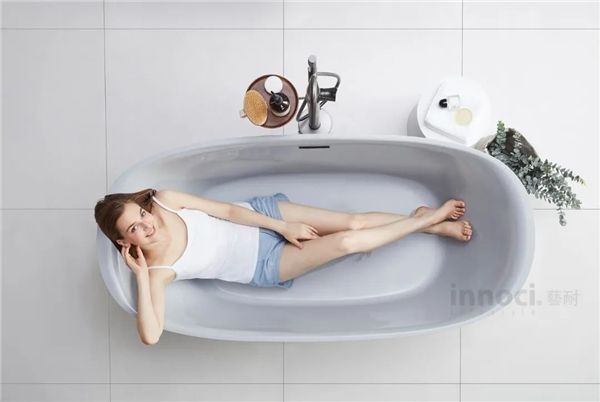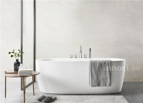 浴缸种类繁多,按材质不同可分为:亚克力浴缸、铸铁浴缸、人造石缸等。不同的浴缸材质,不仅外观不同,保温性、耐用度也会有所差别,目前较主流的为亚克力和人造石浴缸。亚克力浴缸重量轻,大约在30kg~55kg左右,搬运安装都还比较友好。因材质导热性差,所以相对保温,有各种尺寸、颜色和形状可供选择,造型丰富多样,但硬度低,对保养要求比较高。而人造石浴缸则更为保温、抗菌、设计感强,如鹅卵石形浴缸,但是分量沉重,75~90kg,对安装运输条件要求高。