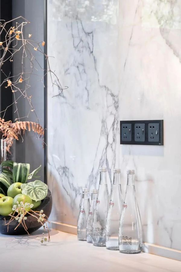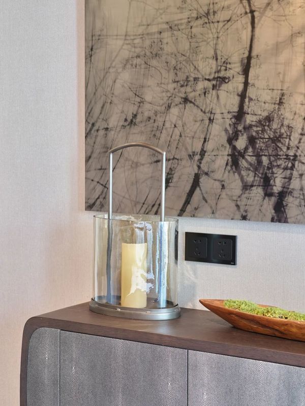 Simon S20系列开关插座采用高端金属型材,极具质感的阳极氧化铝经CNC精密工艺加工后表面细腻顺滑,耐磨防刮。出众、大气的外观高度契合该项目平和、内敛的气质,让面板成为室内装饰艺术的重要元素。