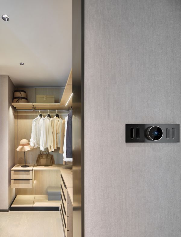 Simon S20系列温控器则采用旋转+感应式交互体验,靠近时,屏幕自动点亮。支持集中控制空调、地暖、新风三大系统,手指滑动即可轻松切换模式。同时,旋转旋钮即可调节室内温度,操作简单,直观清晰。随心掌控居家环境,让用户于叠水庭院间开启万物互联的崭新体验,尽享美好生活格调!