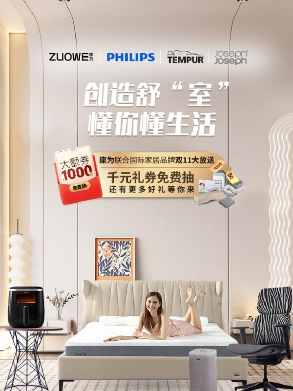 2022年双十一大促日渐临近,线上线下活动已经如箭上弦。在家居领域,再掀品牌跨界联合热潮,座为、飞利浦、泰普尔、JosephJoseph这样的联合营销真“上头“!“创造舒"室",懂你更懂生活“从卧室到书房到厨房提供了人居健康生活的解决方案。四大品牌强强联合疯狂让利给消费者,福利大放送!这个11.11跟着座为、飞利浦、泰普尔、JosephJoseph买买买……