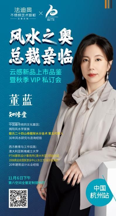 11月6日,法迪奥“解密家居风水哲学”巡讲沙龙·杭州站,将在杭州第六空间定制馆法迪奥旗舰店展厅盛大开启。