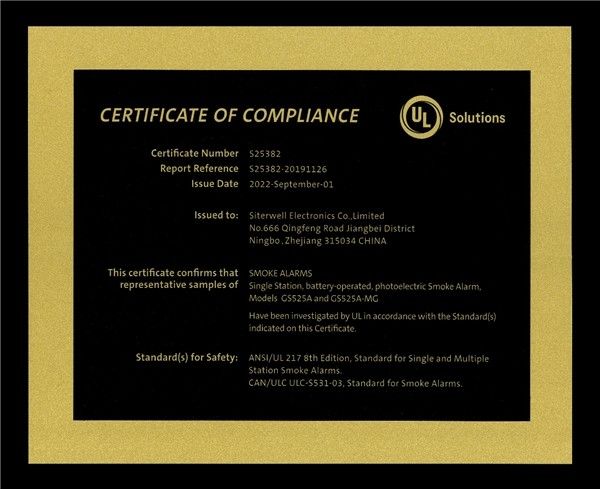 全球唯三全栈自研,赛特威尔最新烟感方案率先通过UL217 第八版认证!