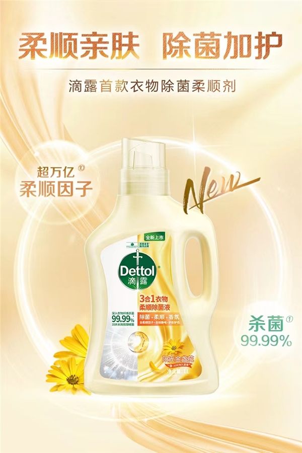 滴露衣物除菌柔顺剂将柔顺固色与杀菌除螨结合,用先进科技开启衣物洗护新时代。