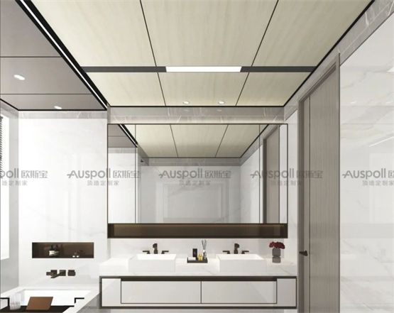 卫生间光线差。在装修时首先要注意最好不用沉闷的色调,选择浅色系列瓷砖作为空间主色调,即便是暗卫也看起来不会暗淡,让整个空间有呼吸感,顶墙一体化让空间更显大,欧斯宝集成吊顶高颜值,款式花色繁多,防潮防水,适用于卫生间装修。