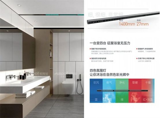 除了干湿分离,还不能忘了给空间通风换气。在淋浴区上方安装一个智能浴霸,能排出潮气、闷热、也能去除空间异味,到了秋冬天的时候还能取暖。打开欧斯宝智能风暖浴霸,负离子净化空气,迎着温柔自然风,畅享“森”呼吸,让浴室空气一直维持在清新舒适的状态。