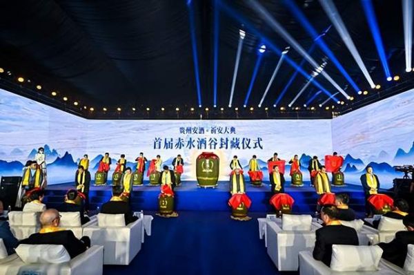 在两款新品平安如意坛、癸卯兔年纪念酒亮相后,祈安大典还举行了赤水酒谷封藏仪式,由001号封藏官姜文邀请20位嘉宾上台,贵州安酒追根溯源,敬天地自然,以美酒封藏,承载美好期盼,并形成了安酒讲究的封藏酒礼典制,嘉宾们使用定制玉玺印章在封藏酒坛上盖章,共同见证赤水酒谷封藏的重要时刻。