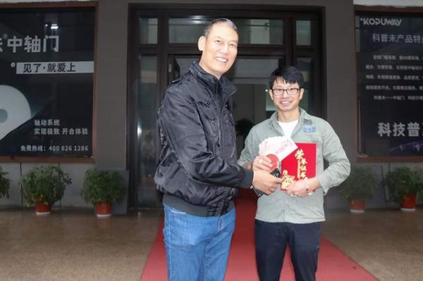 总经理胡旭给第二名得奖者钣金车间许梦颁奖