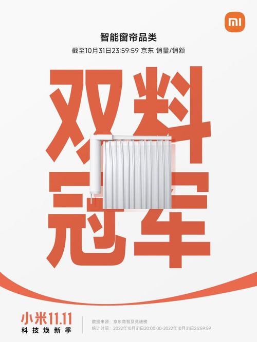 此外由Aqara绿米研发生产的小米智能门锁E、小米电动窗帘品类再次凭借优秀的性价比获得大众追捧,成为了双十一开门红的爆款单品。其中米家智能窗帘系列获京东品类销量销额双冠军,小米智能门锁E获京东智能门锁品类单品销量冠军!