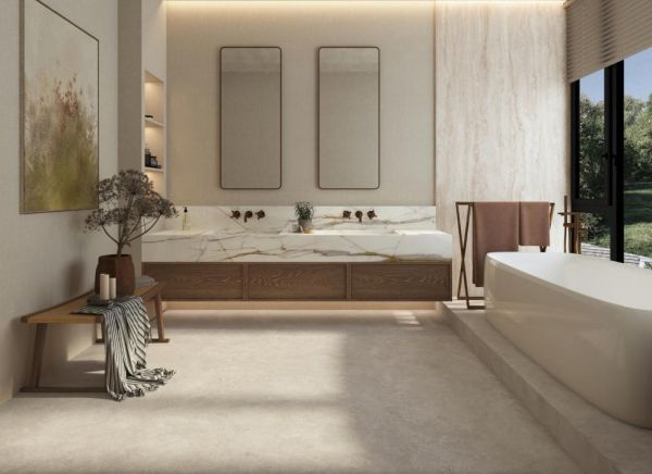巴尔曼米/灰采用NET - TEC 自然蚀刻还原技术,是柔和光感与自然触感的双重结合,为空间带来沉稳的外观韵味和与生俱来的厚重清雅,看似简单实质比金碧辉煌更具生活气息,时刻透露着高阶人居对品位的追求。灰得纯粹,米得优雅,9mm的黄金厚度,可墙可地,为空间铺贴出舒适的基础色调。