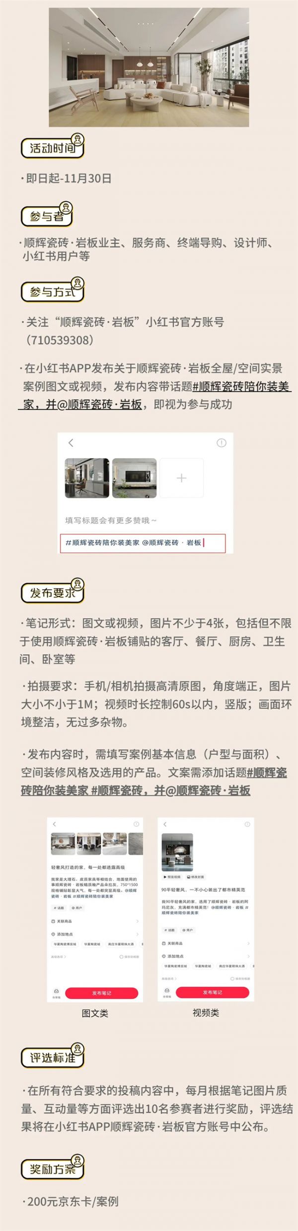 顺辉瓷砖·岩板“小红书主题月”有奖互动第三期即将开启!
