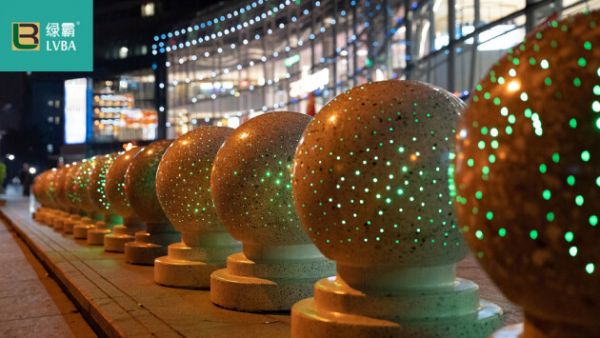 绿霸发光挡车球采用天然环保材料制作,相比天然石材,在保证性能的情况下,更具可持续发展前景,安全防护,妆点环境,属于全国独家多项专利产品。绿霸采用低碳技术,聚焦于减少物耗、减少能耗以及减少污耗等方面,让石材材料更加符合世界环保趋势和人类生存需求的目标。在国家政策扶持、消费升级、资本涌入等多项利好因素的共同作用下,发光防撞球、防撞柱为刚需产品,市场空间大,增长持续,受到各方追捧,迎来发展黄金期。因此首次和北环大道佐伶虹湾联手合作,打造更环保、更高端、更美观、更时尚、更科技的广场商圈,让广大群众可以在黑夜里享受安全靓丽风景。