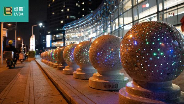 绿霸发光阻车球是一种高科技产品,采用独特材料制作而成,采用安全可靠的技术生产而成。阻车石球表面经过特殊处理,抗腐蚀、抗老化,可以在阳光下长时间使用。并具有耐老化性质,可以长期在户外使用。夜间可定时发光,通电球体表面发光色彩变幻丰富,为使用场景实现美化,它具有良好的安装效果,防止车辆碰撞到行人造成安全事故,有效的保护行车人员不受伤害。佐阾,作为深圳绿景集团潜心打造的首个专注社区邻里商业的购物中心品牌,全方位打造便利、体验、经济、时尚的新型社区购物环境,将文化艺术带进社区居民的日常生活。综上考虑,为了更方便居民,采购了大量绿霸发光阻路石,进行常规产品升级迭代,将广场沿路边的阻路石进行替换,不仅与停车出入口管理完美结合,有助于人车分流,保障社区的人车安全,同时具有独特的景观与风格,提升人气,增加商业价值。