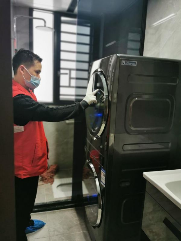 过了几天,负责配送安装的服务人员上门了。上门安装的大哥非常有礼貌,干活也很麻利,讲话和声细语。由于我之前没用过这种类型的洗衣机,他向我详细讲解了洗衣机的使用注意事项,之后安装过程中的一些杂物他都一并清理带走了。我看着崭新的洗衣机,心里觉着本顾客这次真的是当了一回“上帝”了!