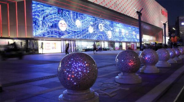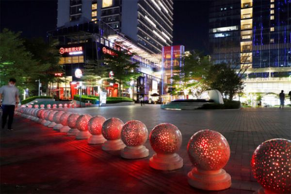 绿霸发光防撞球柱案例|虎门万达广场,用发光展示城市魅力