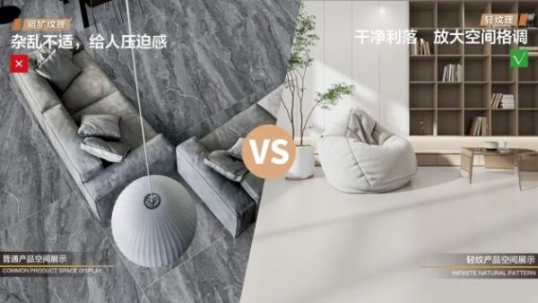 选用瓷砖时选择箭牌复合轻纹砖简洁的轻纹理瓷砖,可以给空间多一点留白,减少空间杂乱感。