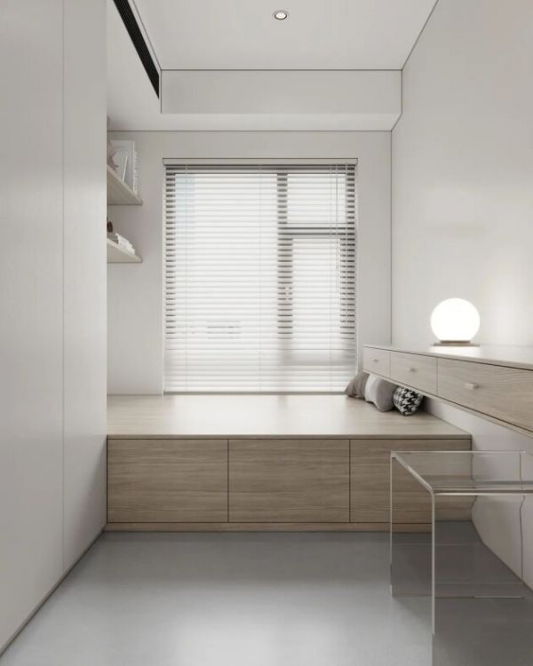 比如白色、米色等淡雅的色调,这种色系柔和统一,干净明亮,让人从视觉上就有放大感,无形中为狭窄空间带来延伸。