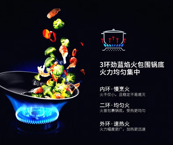 超大吸力能够满足你任何日常烹饪需求,让油烟在产生的瞬间就顺着飓风吸力被卷入吸风口,杜绝跑烟、漏油现象,给你360°贴心健康保障。