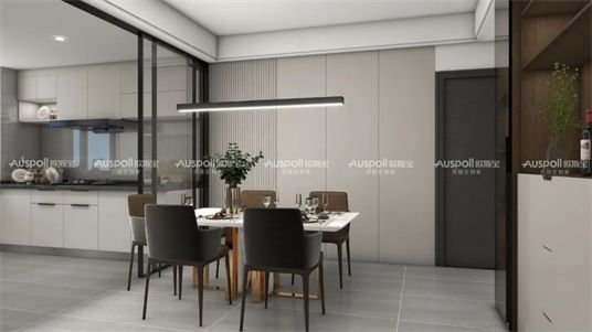 欧斯宝蜂窝大板宛如一身时尚而富有生活“温度”的时装,缝隙少,衔接更自然,不同规格,多种尺寸,搭配极窄边框,安装效果更好,给顶部空间做了减法设计,抬头即可见纯粹简约的美好。