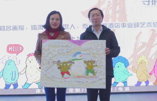 现场播放了香港知名艺术家许尤嘉的爱心祝福VCR,许尤嘉先生委托杭州商场副总经理董必杰和爱心商户GE电器、顾家家居、恒洁卫浴、西大门家居、良匠装饰为“七色星球”浙江省特殊儿童艺术团捐赠了艺术作品,其作品展示了可爱童真的艺术形象。