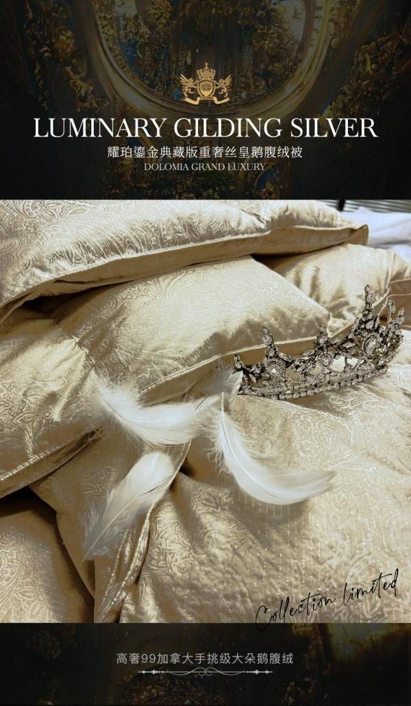 史上最贵DOLOMIA白皇系鹅绒被-GOLDEN QUEEN耀珀鎏金,抗菌镶银10万起售,...
