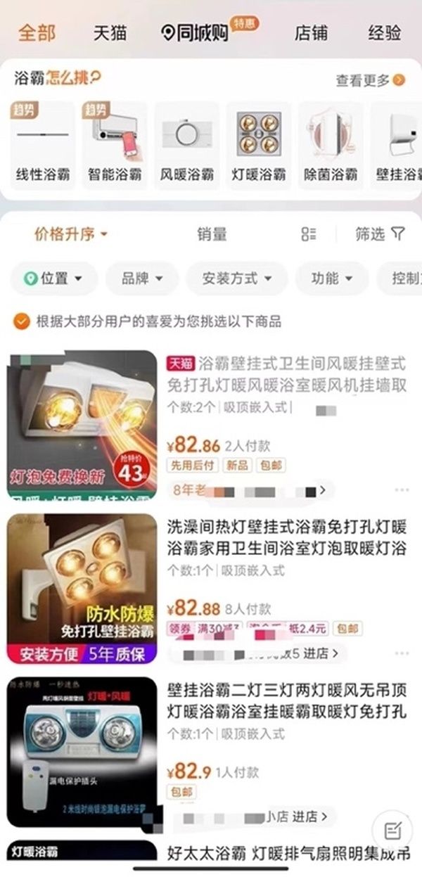 满足基本功能之外,浴霸还有怎样的惊喜?当前,随手打开主流网购平台搜索“浴霸”会发现,上到主流家电厂商、互联网大厂,下到一些地方品牌,都推出了价格在82.86元-50000元区间不等的浴霸产品。