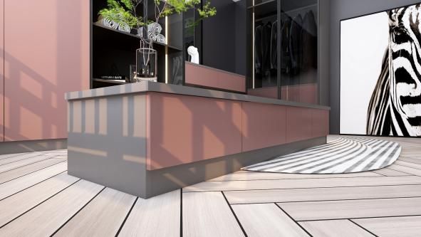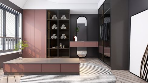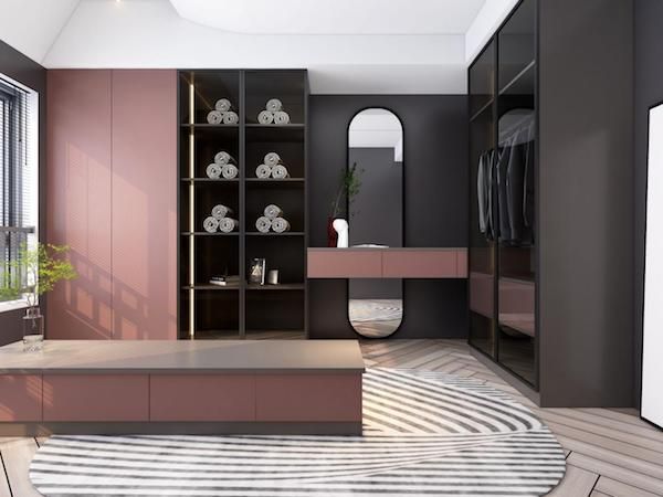 与传统的卧室衣柜不同,步入式衣柜增加了行走和试衣区域,让使用者拥有充裕的活动空间。