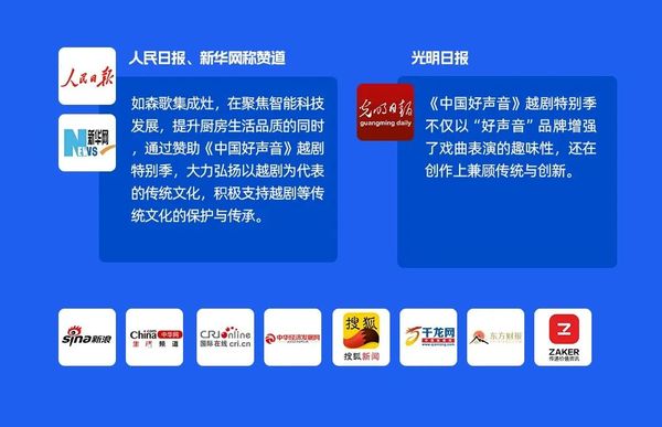 优秀!森歌集成灶携手《中国好声音》越剧特别季,助力文化传承与创新,获《人民日报》点赞