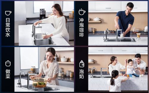能出净水又能出热水,不仅满足了平时的饮水需求,拥有1.8L每分钟的大流量热水,还满足在厨房里做饭、煲汤时,大锅接热水,速度又快量又大。专利高端温控龙头,可智控设定“98℃、90℃、80℃”三种不同温度开水,满足用户98℃泡红茶、90℃泡咖啡、80℃绿茶等多场景的开水需求,就连晚上熬夜工作、刷剧、游戏,随时来泡个杯面也一键搞定,为用户提供了更多的饮水便利。