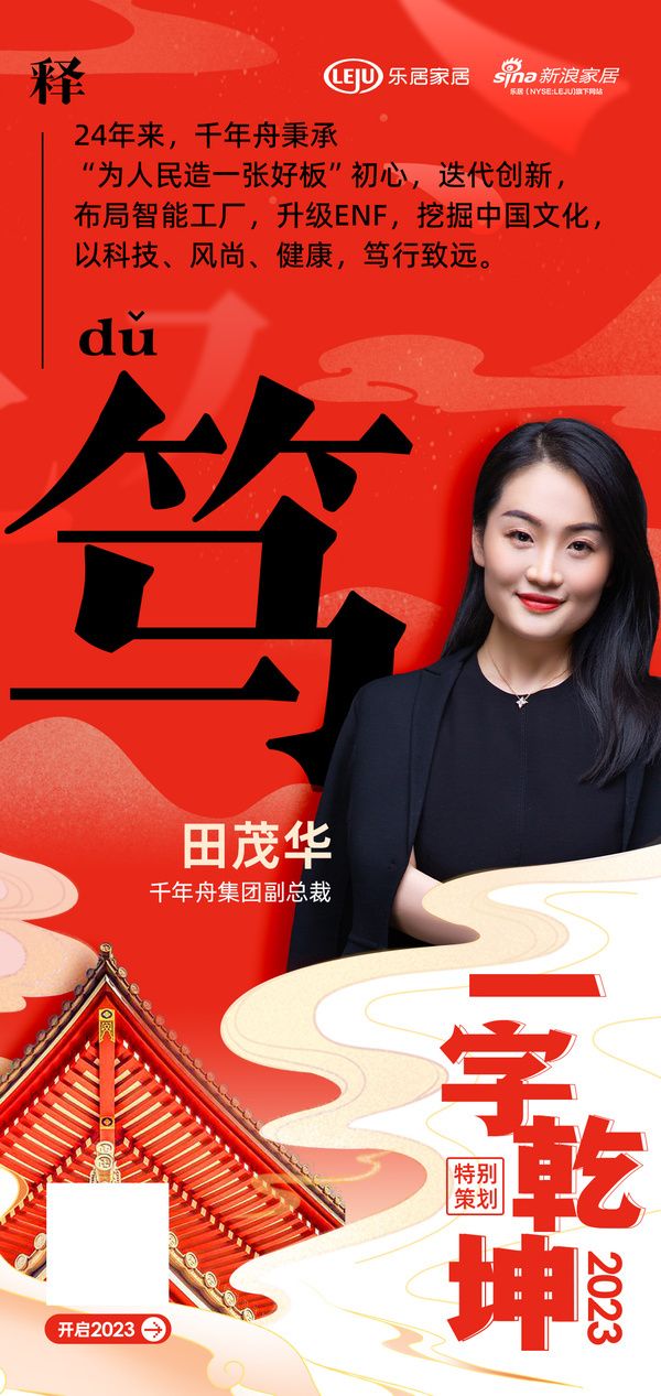 兔年开年之际,新浪家居诚挚推出“2023 一字乾坤”活动。本活动齐聚家居10大行业,百位企业家,用一个汉字展望自己心中的“2023”。通过汉字之美传递中国家居人初心依旧,奋发向上,自强不息,创新不辍的精神面貌。