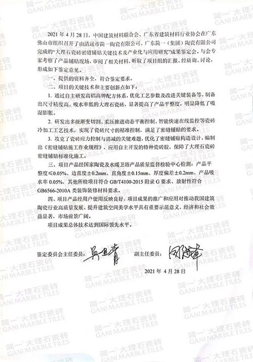 经权威专家鉴定,简一密缝铺贴技术总体达国际领先水平