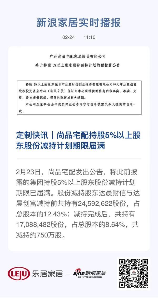 定制快讯 | 定制快讯|尚品宅配持股5%以上股东股份减持计划期限届满